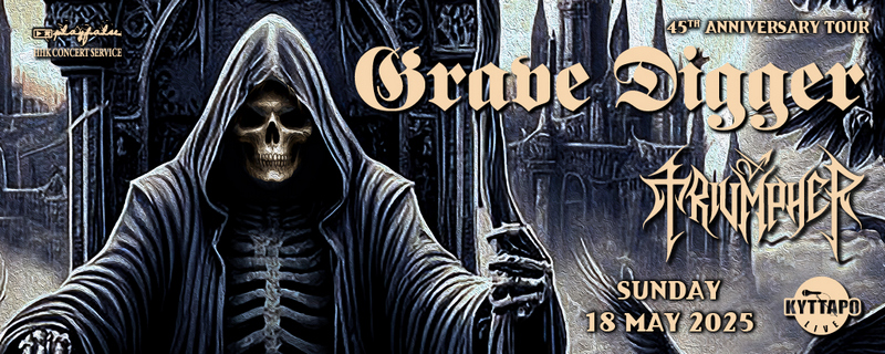 Οι θρυλικοί Γερμανοί heavy / power metallers GRAVE DIGGER επιστρέφουν στη χώρα μας για μία εκρηκτική συναυλία τον Μάιο του 2025 που υπόσχεται να μείνει χαραγμένη στη μνήμη όσων την παρακολουθήσουν. Μαζί τους, οι ανερχόμενοι Έλληνες epic metallers TRIUMPHER, που θα προετοιμάσουν το έδαφος με τις δυναμικές τους συνθέσεις.