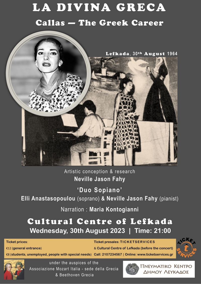 As a homage to the centenary of the sublime Diva, the "Duo Sopiano" will be presenting a tribute at the Cultural Centre of Lefkada the 30th of August.