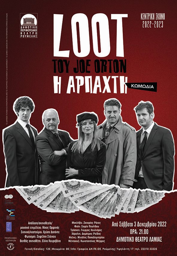 Το έργο Loot πρωτοανέβηκε στο Λονδίνο το 1966. Αποτελεί τη μεγαλύτερη θεατρική επιτυχία του JoeOrton, ενός πρόωρα αδικοχαμένου συγγραφέα, ο οποίος δολοφονήθηκε από τον σύντροφό του, μόλις ένα χρόνο μετά το ανέβασμα του έργου. Μια κωμωδία που ανανέωσε το Βρετανικό θέατρο, βγάζοντας τη γλώσσα στο συντηρητικό καθωσπρεπισμό της τότε αγγλικής κοινωνίας και πυροδοτώντας μια ολόκληρη γενιά δραματουργών. Ένα έργο ορόσημο, εξαιρετικά μοντέρνο, σε επίπεδο γραφής, πλοκής και χιούμορ.