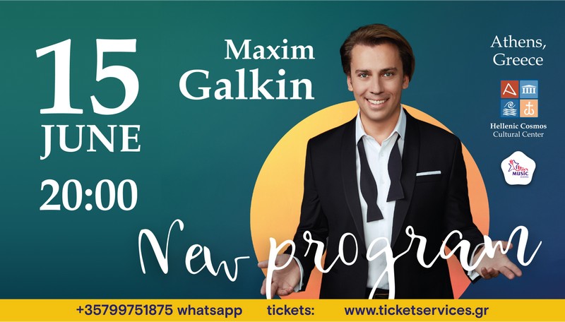 Приходите на концерт Максима Галкина 15 июня в Афинах в Hellenic Cosmos Cultural Center! Это настоящее удовольствие длиною два часа - свободный и ироничный поток ярких мыслей от поистине остроумного человека.