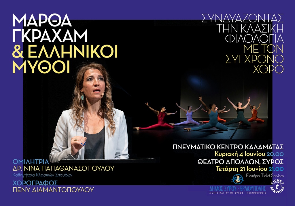 Πρόκειται για μια πρωτότυπη παράσταση / δρώμενο που συνδυάζει την κλασική φιλολογία με την τέχνη του σύγχρονου χορού, και η οποία περιέχει αποσπάσματα από τα έργα της σπουδαίας Αμερικανίδας χορογράφου Μάρθα Γκράχαμ που είναι βασισμένα στην αρχαία ελληνική μυθολογία, έργα που αναδεικνύουν την πολιτιστική κληρονομιά της Ελλάδας και την επιρροή των αρχαίων κειμένων στις τέχνες και τον πολιτισμό των ΗΠΑ αλλά και ευρύτερα.