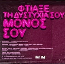 Μετά τις επιτυχημένες sold out παραστάσεις και τη θερμή υποδοχή του κοινού τον περασμένο Ιούνιο, η παράσταση «Φτιάξε τη δυστυχία σου μόνος σου» επανέρχεται για έναν νέο κύκλο παραστάσεων στο Ίδρυμα Μιχάλης Κακογιάννης (Υπόγειο), 22-25 Σεπτεμβρίου 2022 και ώρα 21:30.