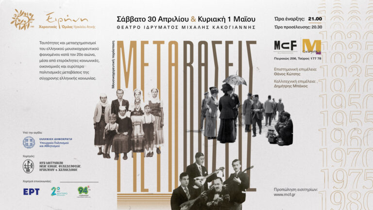 Ο Χορευτικός Όμιλος Ειρήνη (www.xoreutikoeirini.gr) υποστηρίζει την παράδοση και την ιστορία του τόπου και σε συνέχεια της επιτυχημένης 40χρονης πορείας του, παρουσιάζει τη μουσικοχορευτική παράσταση «ΜΕΤΑΒΑΣΕΙΣ».