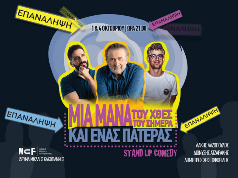 Ο Λάκης Λαζόπουλος συναντιέται επί σκηνής, την Κυριακή 1 & Τετάρτη 4 Οκτωβρίου στο Θέατρο του Ιδρύματος Μιχάλης Κακογιάννης, με δυο νέους stand up comedian τον Διονύση Ατζαράκη και τον Δημήτρη Χριστοφορίδη.