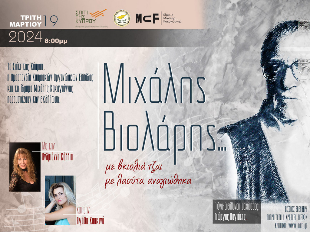 Το Σπίτι της Κύπρου, η Ομοσπονδία Κυπριακών Οργανώσεων Ελλάδας και το Ίδρυμα Μιχάλης Κακογιάννης σας προσκαλουν στη συναυλία