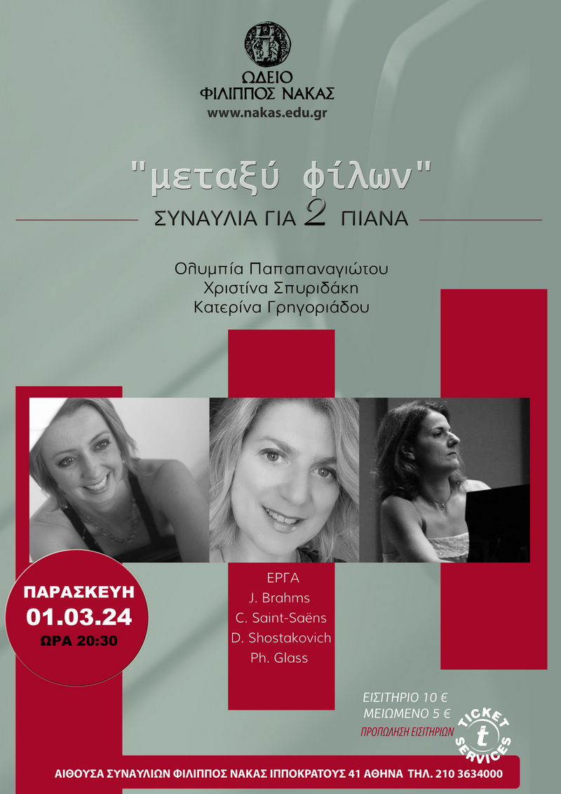 Αυτή τη φορά στη συναυλία τους που θα δοθεί την Παρασκευή 1 Μαρτίου, στις 8.30 μ.μ. στην Αίθουσα Συναυλιών Φίλιππος Νάκας, συνεργάζονται σε έργα για δύο πιάνα, έργα που το καθένα έχει τον δικό του χαρακτήρα, συνδυάζοντας τη δραματική δύναμη και τη λυρική ένταση, από τη ρομαντική περίοδο έως τον 20ό αιώνα.