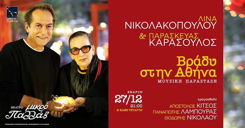 Βράδυ στην Αθήνα: Η ανάσα κι ο αέρας που φέρνουν με τα τραγούδια τους, η Λίνα Νικολακοπούλου και ο Παρασκευάς Καρασούλος στην πόλη...