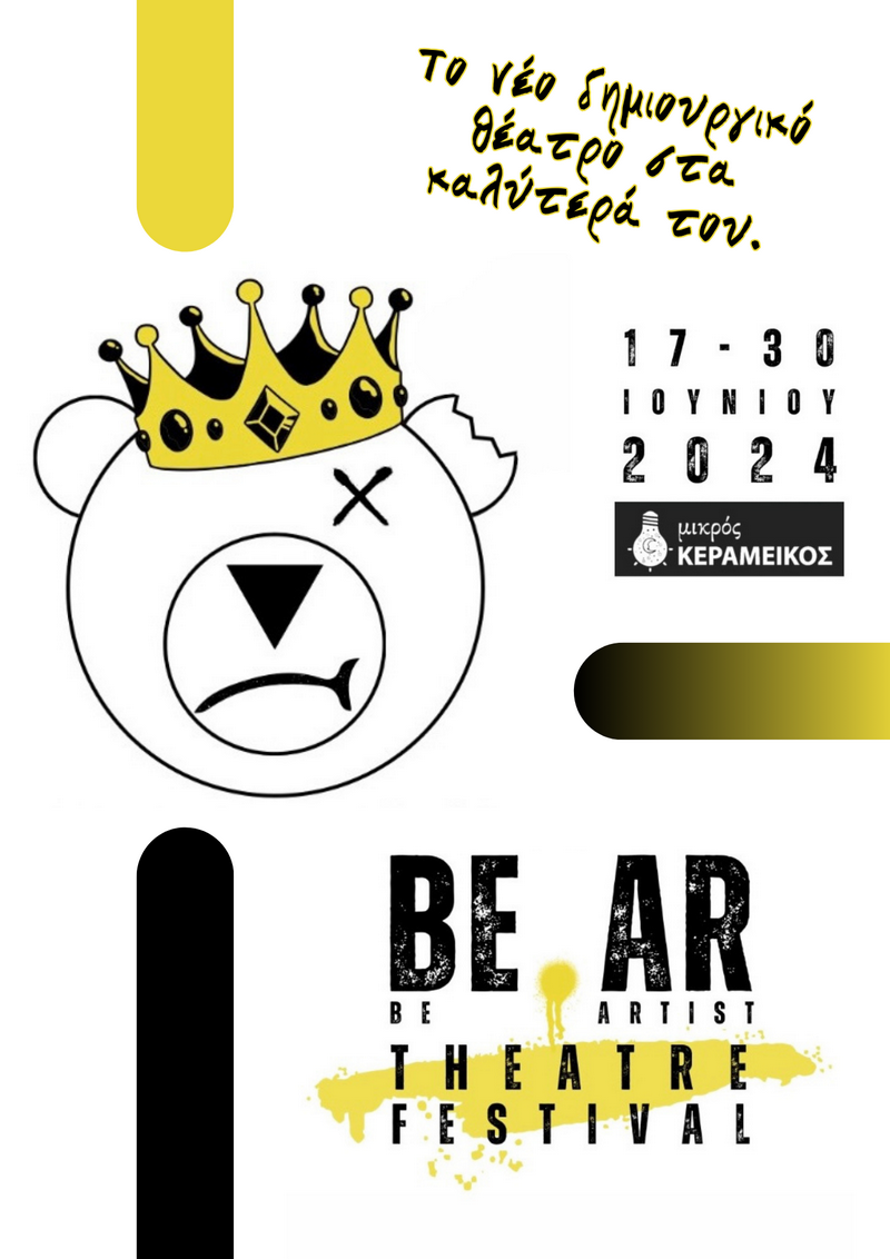 Στο νεοσύστατο «BE.AR | Be Artist Theatre Festival», υπό την καλλιτεχνική διεύθυνση του σκηνοθέτη Χρήστου Καρασαββίδη, θα δοθεί η ευκαιρία σε πολλές νέες ομάδες και νέους καλλιτέχνες, ηθοποιούς, σκηνοθέτες, συγγραφείς αλλά και κάθε είδους συντελεστές, να παρουσιάσουν τις δουλειές τους, να πειραματιστούν, να δημιουργήσουν και να συναγωνιστούν, σε ένα φεστιβάλ που επιδιώκει να αποτελέσει τη νέα πρόταση στην ανάδειξη της νέας γενιάς καλλιτεχνών της χώρας. Για δύο εβδομάδες, η σκηνή και το φουαγιέ του θεάτρου «Μικρός Κεραμεικός» θα γεμίσουν με παραστάσεις, performances, μουσικά live και κάθε είδους καλλιτεχνικά events.