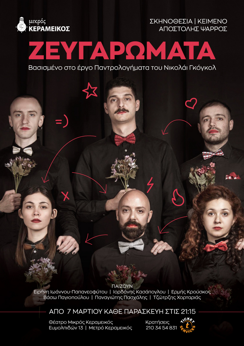 H κλασσική σάτιρα του Γκόγκολ στέκεται αφορμή στο να εξωτερικεύσουμε όλα αυτά που μας απασχολούν στον έρωτα και τις σχέσεις. Τα Ζευγαρώματα προκύπτουν από τις ανάγκες και τις ανασφάλειες μας. Του πως μας αρέσει να ζούμε τη ζωή μας. Το όνειρο του καθενός, είναι το κατάλληλο ζευγάρωμα, και προκειμένου να επιτευχθεί επιστρατεύεται κάθε παραδοξότητα.