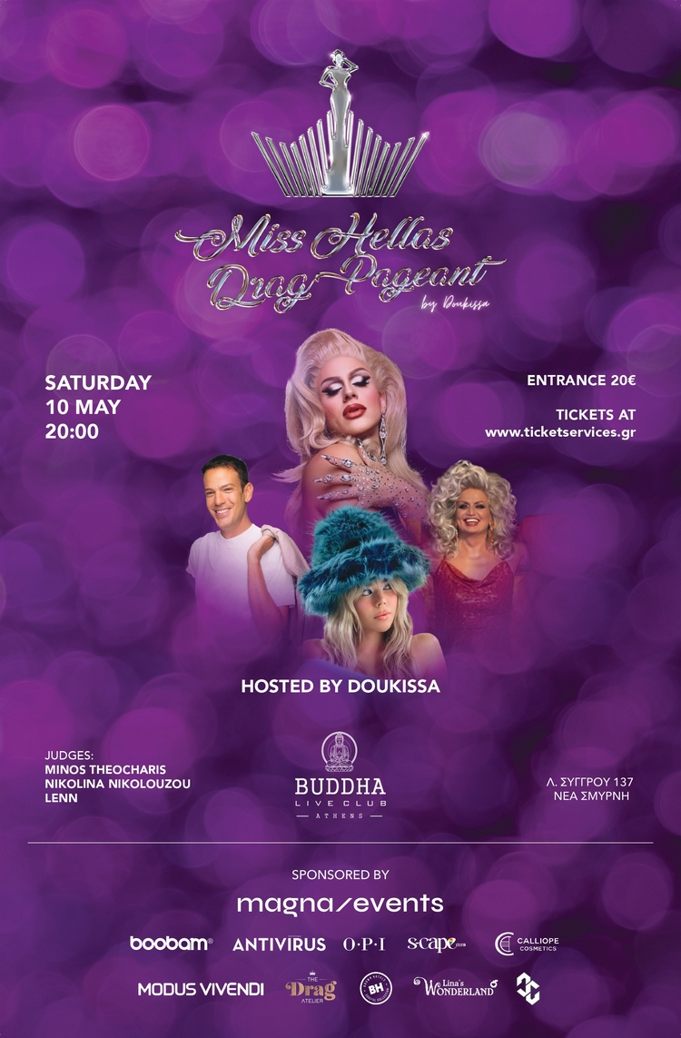 Τα Miss Hellas Drag Pageant, σε συνεργασία με το Buddha Live Club και την Magna Events, διοργανώνουν τα πέμπτα σε σειρά καλλιστεία για Drag Queens απ' όλη την Ελλάδα και την Κύπρο. Οι συμμετέχουσες θα διαγωνιστούν σε δύο κατηγορίες, Pageant Queen in an Evening Gown - Βραδινό ένδυμα και Δείξε μας το Ταλέντο σου - Drag show/Performance. Κριτική επιτροπή θα είναι η Νικολίνα Νικολούζου Queer Μοντέλο και νικήτρια του My style Rocks, ο ηθοποιός Μίνος Θεωχάρης και ο Legendary Lenn.