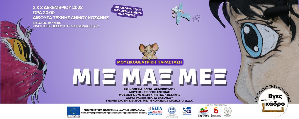 Η παράσταση χρηματοδοτείται από την Ελλάδα και την Ευρωπαϊκή Ένωση, μέσω του Επιχειρησιακού Προγράμματος «Δυτική Μακεδονία» 2014-2020 και αποτελεί δράση της εκστρατείας «Βγες από το κάδρο». Στόχος της εκστρατείας είναι η ενημέρωση του κοινού για τη συνδρομή της Ευρωπαϊκής Ένωσης στη βελτίωση της ποιότητας ζωής των ατόμων με αναπηρίες, στην ευαισθητοποίηση των πολιτών και στην προώθηση της κατανόησης σε θέματα αναπηρίας, με τη χρηματοδότηση παρεμβάσεων μέσω των Επιχειρησιακών Προγραμμάτων Δυτικής Μακεδονίας του ΕΣΠΑ 2014-2020 και 2021-2027.