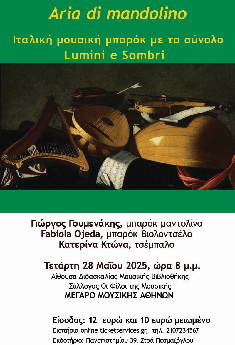 Το μπαρόκ σύνολο Lumini e Sombri καταπιάνεται με ένα άγνωστο ρεπερτόριο στο ευρύ κοινό γραμμένο από σπουδαίους συνθέτες που τους ενώνει η κοινή ιταλική καταγωγή και μουσική τους παιδεία.