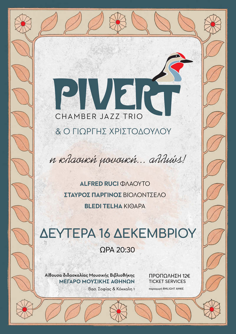 Ο Γιώργης Χριστοδούλου παρουσιάζει το Pivert chamber jazz trio,