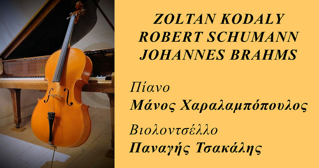 Ο Μάνος Χαραλαµπόπουλος στο Πιάνο και ο Παναγής Τσακάλης στο Βιολοντσέλο θα ερµηνεύσουν τη Sonatina του Zoltan Kodaly, την Kreisleriana Op.16 του Robert Schumann