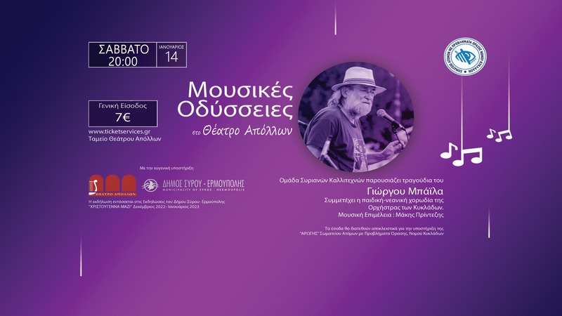 Το Μουσικό Σχήμα "Αρμενιστές" ενώνει τις δυνάμεις του με ομάδα Συριανών καλλιτεχνών για φιλανθρωπικό σκοπό και στηρίζει το Σωματείο Ατόμων με Προβλήματα Όρασης Νομού Κυκλάδων ΑΡΩΓΗ , παρουσιάζοντας τη συναυλία "Μουσικές Οδύσσειες".