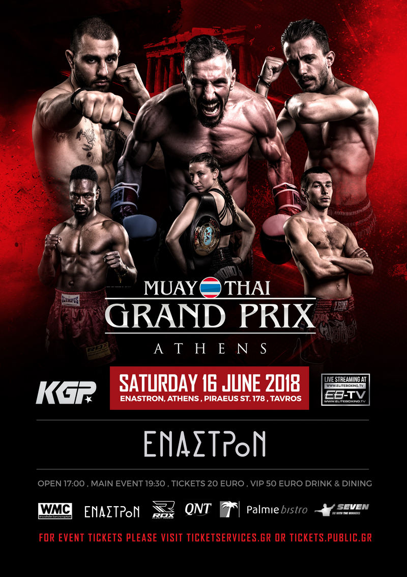 Οι καλύτεροι αθλητές της Ελλάδας θα τα δώσουν όλα για να πάρουν την μεγάλη πρόκριση πάνω στο ρινγκ της διεθνούς διοργάνωσης "Muay Thai Grand Prix" που θα πραγματοποιηθεί στο γνωστό σε όλους "Eναστρον" (Λ. Πειραιώς 178, Ταύρος), σε έναν εξαιρετικό χώρο που σε συνεργασία με το κορυφαίο αγγλικό promotion θα διαμορφωθεί ανάλογα για τις ανάγκες της διοργάνωσης.