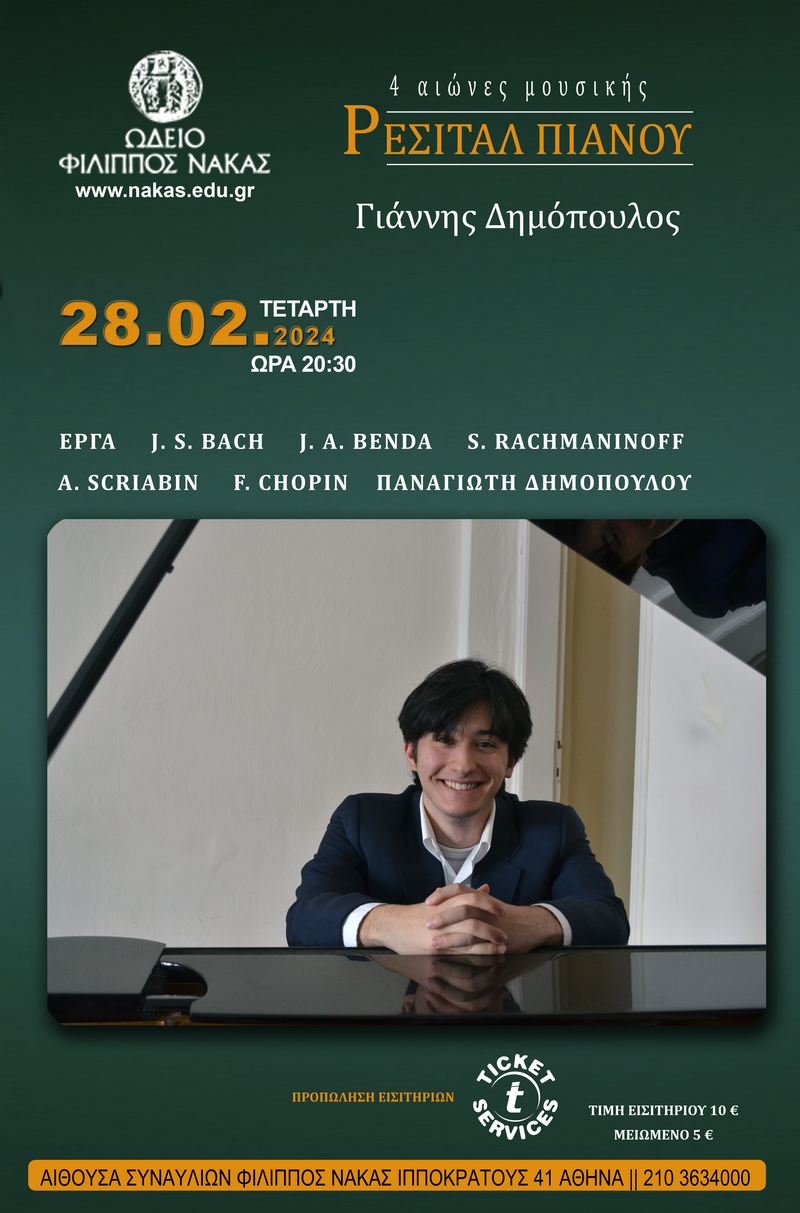 Το ρεσιτάλ του Γιάννη Δημόπουλου στην Αίθουσα Συναυλιών Φίλιππος Νάκας περιλαμβάνει μουσική γραμμένη (και μεταγραμμένη) για πιάνο σε τέσσερις αιώνες, από τον 18ο μέχρι και τον 21ο. Η ακρόαση ξεκινά με ένα ταξίδι από την μπαρόκ περίοδο και φτάνει ως τις μέρες μας, δοκιμάζοντας πολλές από τις ενδιάμεσες αισθητικές και αποχρώσεις του ρεπερτορίου.