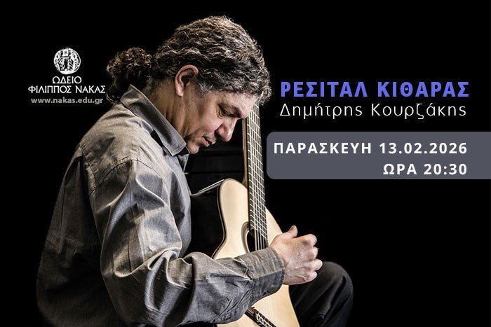 Μια βραδιά κατά την οποία η κιθάρα του Δημήτρη Κουρζάκη θα γίνει γέφυρα ανάμεσα στους αιώνες και στις μουσικές παραδόσεις - από τη δεξιοτεχνική αυστηρότητα του J. S. Bach έως την εκφραστική ένταση του Gustav Mahler, και από τη λυρική μεσογειακή γραφή των Manuel de Falla και Isaac Albéniz έως τις σύγχρονες ελληνικές φωνές του Μιχαήλ Τραυλού και του Νίκου Ντρέλα.