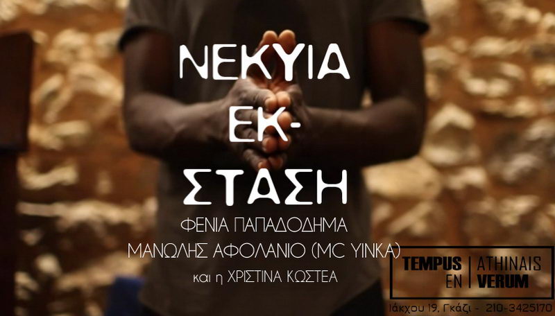 Η ΝΕΚΥΙΑ - ΕΚ-ΣΤΑΣΗ Θα παρουσιαστεί στο Tempus Verum - Εν Αθήναις, Ίακχου 19, από τις 18 Απριλίου και για τέσσερις εβδομάδες κάθε Τετάρτη και Πέμπτη.