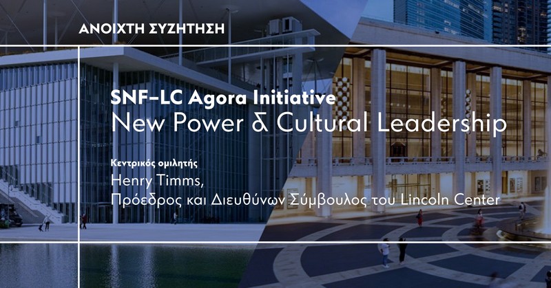 Στο πλαίσιο της πρωτοβουλίας Stavros Niarchos Foundation-Lincoln Center (SNF-LC) Agora Initiative, μίας συνεργασίας ανάμεσα στο Ίδρυμα Σταύρος Νιάρχος (ΙΣΝ) και στο Lincoln Center for the Performing Arts με σκοπό την επανεξέταση και τον επαναπροσδιορισμό της σχέσης και αλληλεπίδρασης του κοινού σε δημόσιους, πολιτιστικούς χώρους, ο Henry Timms, Πρόεδρος και Διευθύνων Σύμβουλος του Lincoln Center θα συμμετάσχει σε μία ανοιχτή εκδήλωση στο Κέντρο Πολιτισμού Ίδρυμα Σταύρος Νιάρχος (ΚΠΙΣΝ) την Πέμπτη, 17 Μαρτίου, στις 19.00.
