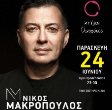 Το Κτήμα Οινοφόρος υποδέχεται τον Νίκο Μακρόπουλο την Παρασκευή 24 Ιουνίου στις 11:00 το βράδυ.