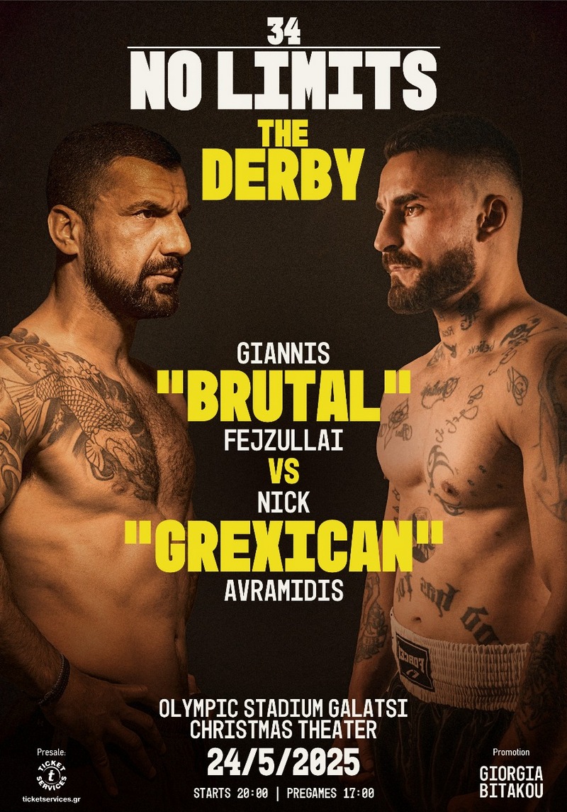 Με ένα συναρπαστικό ντέρμπι που τάραξε τα «μαχητικά νερά» κατά την ανακοίνωσή του, επιστρέφει 24/5/2025 στην Αθήνα το No Limits, η μακροβιότερη μαχητική διοργάνωση, λίγους μήνες μετά το απόλυτα επιτυχημένο show στο κατάμεστο Παλαί ντε Σπορ Θεσσαλονίκης.