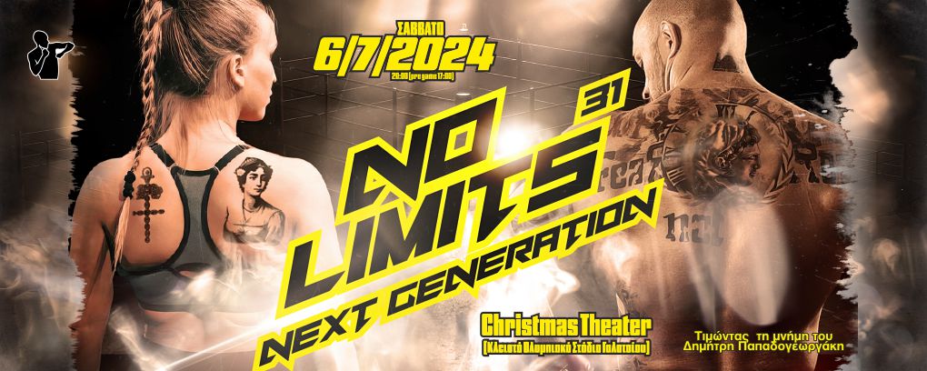 Το No Limits η μακροβιότερη, μεγαλύτερη και ιστορικότερη(2006)τηλεοπτική παραγωγή στο χώρο των μαχητικών αθλημάτων επιστρέφει 6 Ιουλίου στο Christmas Theater(Κλειστό Ολυμπιακό Στάδιο Γαλατσίου) με βασικό σύνθημα "Στην αγάπη δεν χωράει Βία"!