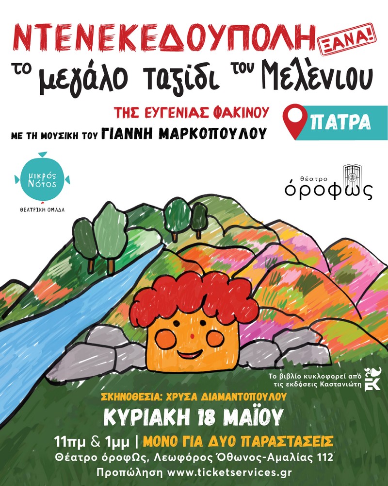Η Ευγενία Φακίνου και ο Μικρός Νότος συγκλίνουν σήμερα στις αξίες του σεβασμού για τα παιδιά και της αγάπης για τα απλά και χειροποίητα υλικά. Μαζί, μιλούν για νοήματα επίκαιρα όσο ποτέ: για τη δημοκρατία, τα δικαιώματα του παιδιού, την προσωπική εξέλιξη, τη μετανάστευση, την εξουσία του μεγάλου προς τον μικρό. Με τη μουσική του Γιάννη Μαρκόπουλου ζωντανά επί σκηνής, με ηχητικά τοπία από αυτοσχέδια κρουστά και με γνωστά και άγνωστα μουσικά όργανα, η παράσταση «Ντενεκεδούπολη ξανά! Το μεγάλο ταξίδι του Μελένιου» παρουσιάζεται στο Ίδρυμα Μιχάλης Κακογιάννης και φέρνει τα παιδιά σε επαφή με πανάρχαια απλά παιχνίδια, χωρίς κουμπιά, διαδίκτυο και υπολογιστές.