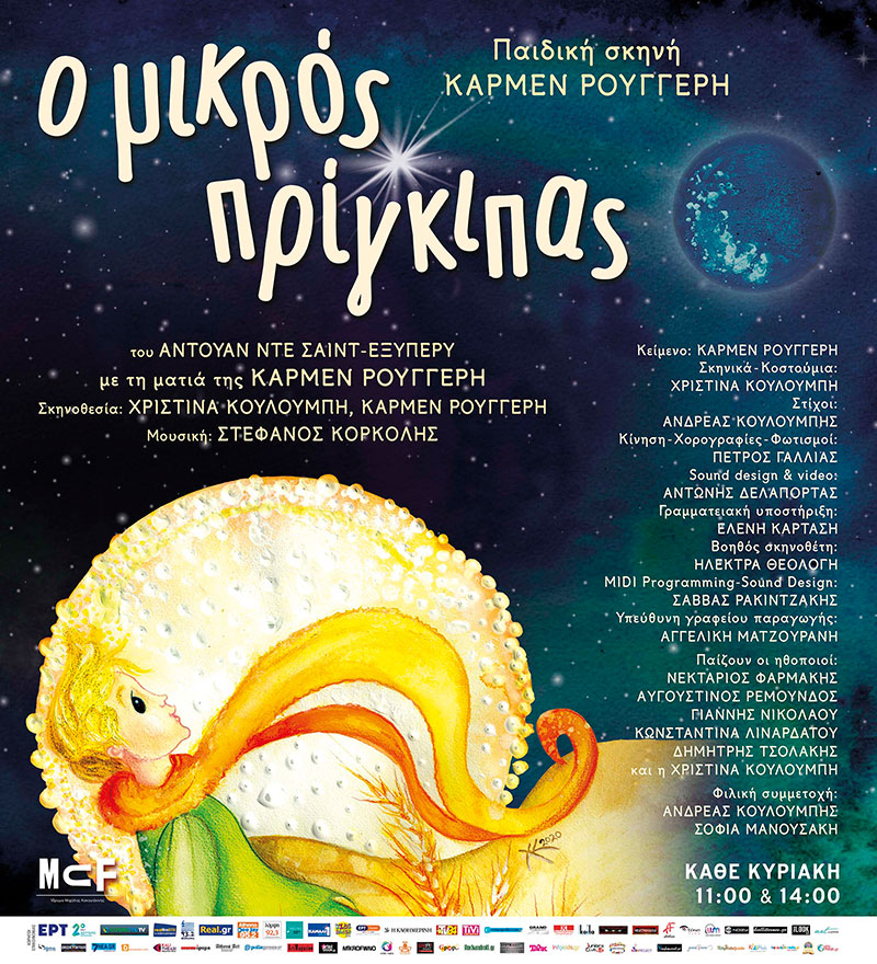 Η παιδική σκηνή ΚΑΡΜΕΝ ΡΟΥΓΓΕΡΗ θα ανεβάσει φέτος στο Ίδρυμα Μιχάλης Κακογιάννης, από την Κυριακή 17 Οκτωβρίου, την παράσταση «Ο ΜΙΚΡΟΣ ΠΡΙΓΚΙΠΑΣ», έργο, που όπως πάντα ψήφισαν τα ίδια τα παιδιά.