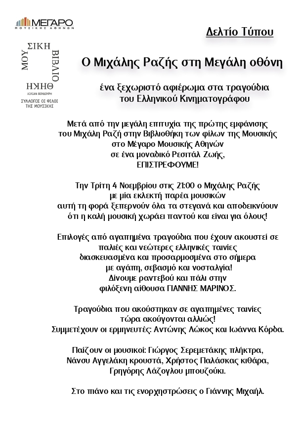 ΣΤΟ ΜΕΓΑΡΟ ΜΟΥΣΙΚΗΣ ΑΘΗΝΩΝ