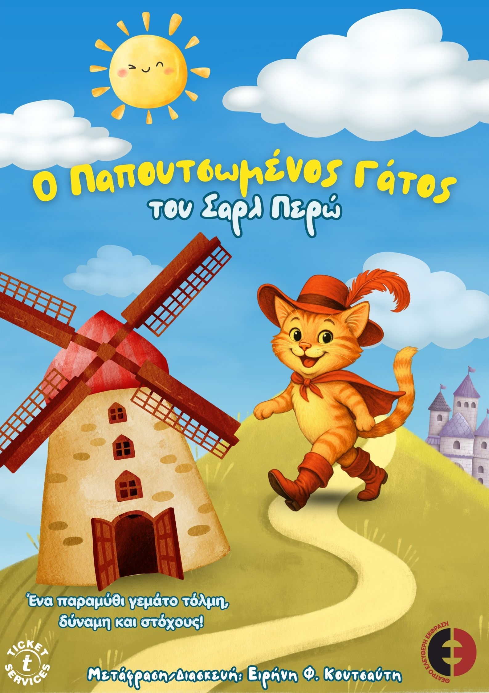 Με ένα ζευγάρι μπότες και ένα σακούλι, ο πιο επινοητικός και πολυμήχανος γάτος επιστρέφει, αυτή τη φορά στη σκηνή του θεάτρου «Ελεύθερη Έκφραση» για τη χειμερινή σεζόν! Με αυτοπεποίθηση και γενναιοδωρία, θα κάνει το φτωχό αφεντικό του γαμπρό του βασιλιά και με πρωτοφανή καπατσοσύνη θα πείσει ακόμα και τη μάγισσα να μεταμορφωθεί σε ποντίκι.