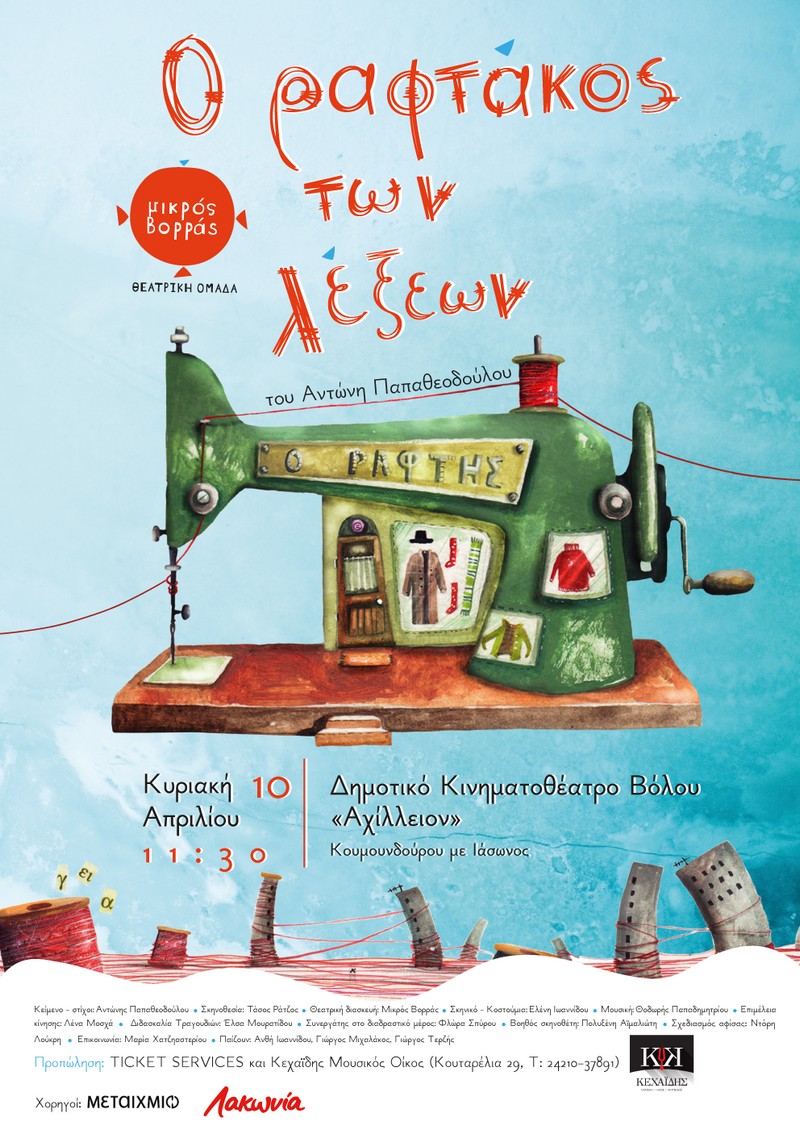 Ο Μικρός Βορράς ταξιδεύει στον Βόλο για να παρουσιάσει την παιδική παράσταση «Ο Ραφτάκος των λέξεων». Η sold-out παράσταση του Μικρού Βορρά βασισμένη στο ομώνυμο best seller του Αντώνη Παπαθεοδούλου, ταξιδεύει για πρώτη φορά στην πόλη του Βόλου για μία εμφάνιση την Κυριακή 10 Απριλίου 2022 και ώρα 11.30, στο Δημοτικό Κινηματοθέατρο Βόλου «Αχίλλειον».