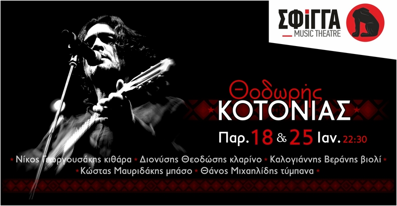 Η μουσική σκηνή Σφίγγα υποδέχεται τον Θοδωρή Κοτονιά για 2 εμφανίσεις, Παρασκευή 18 και 25 Ιανουαρίου!