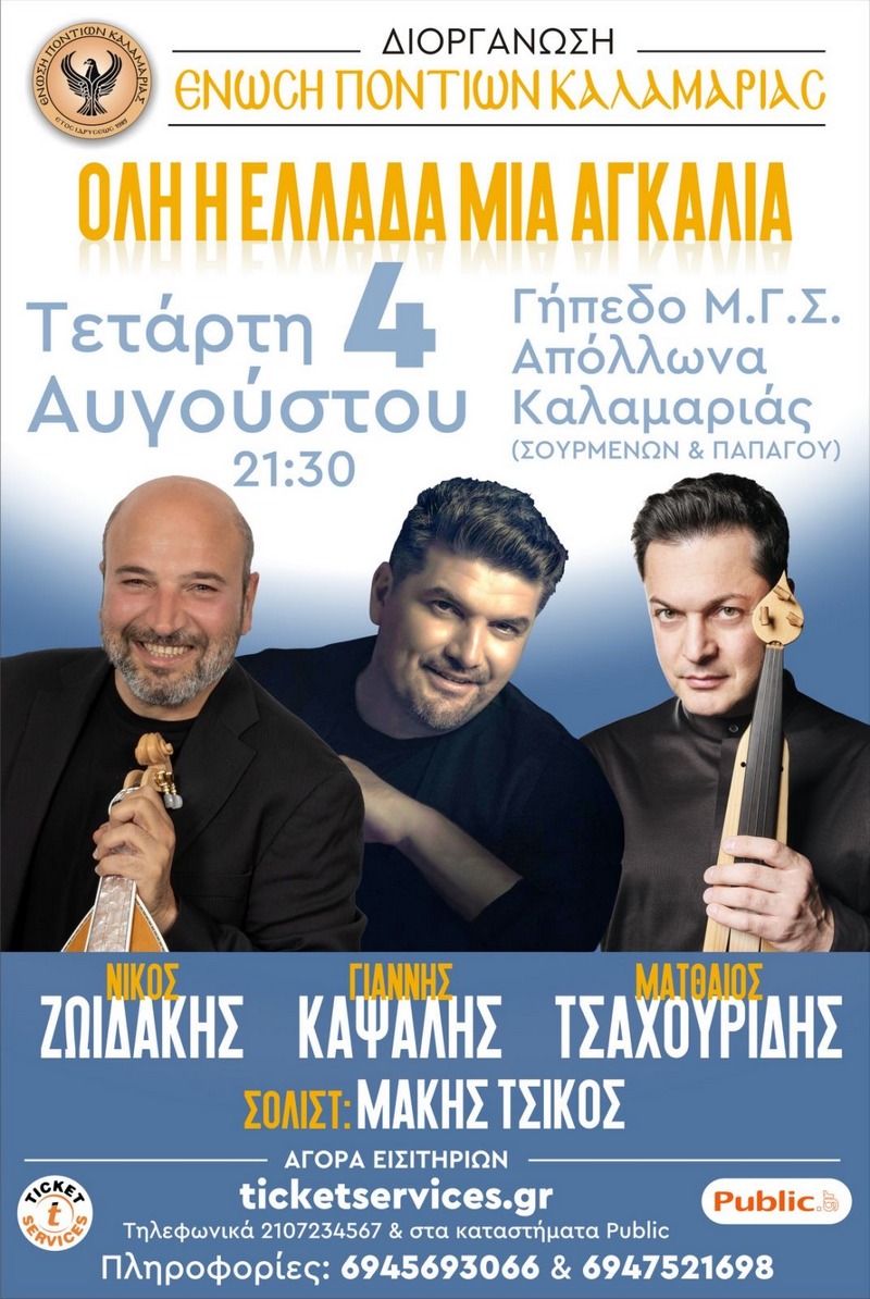 Κρήτη, Πόντος και Ήπειρος γίνονται μία αγκαλιά δένοντας την κρητική με την ποντιακή λύρα αλλά και το ηπειρώτικο κλαρίνο! Δημιουργούν μία μοναδική συναυλία με το Νίκο Ζωϊδάκη απ' την Κρήτη, το Ματθαίο Τσαχουρίδη από τον Πόντο και τον Γιάννη Καψάλη από την Ήπειρο. Μαζί τους ο Μάκης Τσίκος στο Κλαρίνο με τη συνοδεία πολυμελούς ορχήστρας σε ένα ελληνικό, παραδοσιακό- και όχι μόνο-μουσικό ταξίδι, το οποίο οι τρεις καλλιτέχνες παρουσιάζουν για πρώτη φορά μαζί! Δεν πρέπει να χάσει κανείς αυτή την υπέροχη παράσταση !