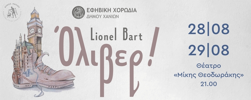 Τα ταλαντούχα παιδιά της Εφηβικής Χορωδίας του Δήμου Χανίων, παρουσιάζουν το μουσικό έργο: «Oliver! The musical», βασισμένο στο βιβλίο του Charles Dickens «Oliver Twist», την Τετάρτη 28 και την Πέμπτη 29 Αυγούστου 2024, στο Θέατρο «Μίκης Θεοδωράκης», ώρα 21.00.