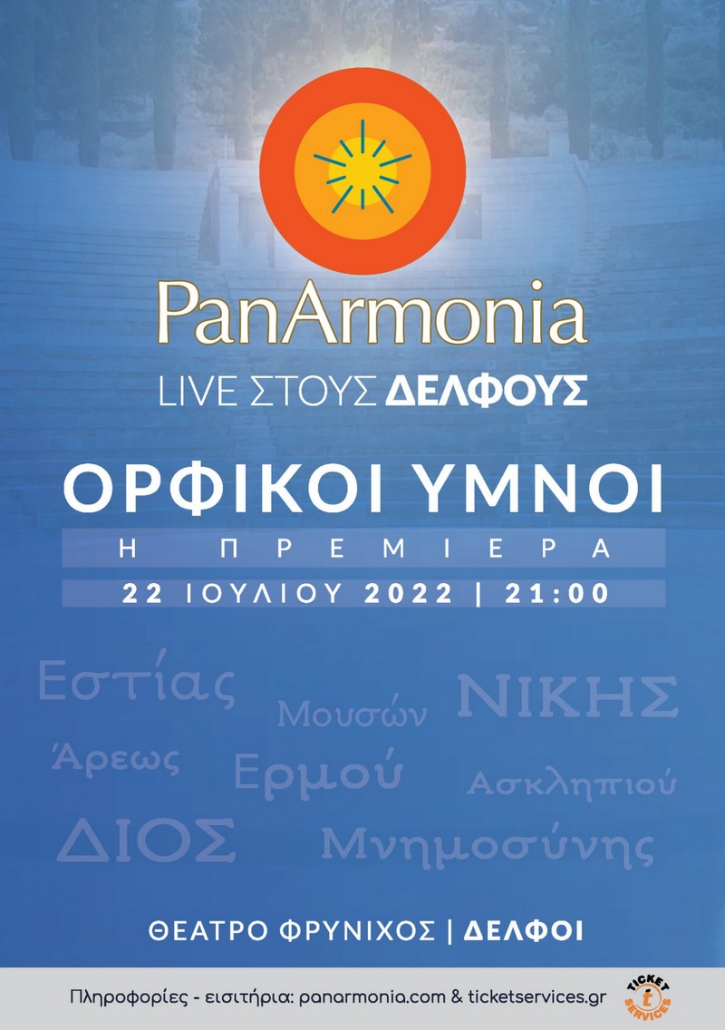 Η PanArmonia παρουσιάζει την μουσική παράσταση «Ορφικοί Ύμνοι – Η Πρεμιέρα» σε παγκόσμια πρώτη μουσική απόδοση στο Θέατρο «Φρύνιχος» στους Δελφούς, την Παρασκευή 22 Ιουλίου.