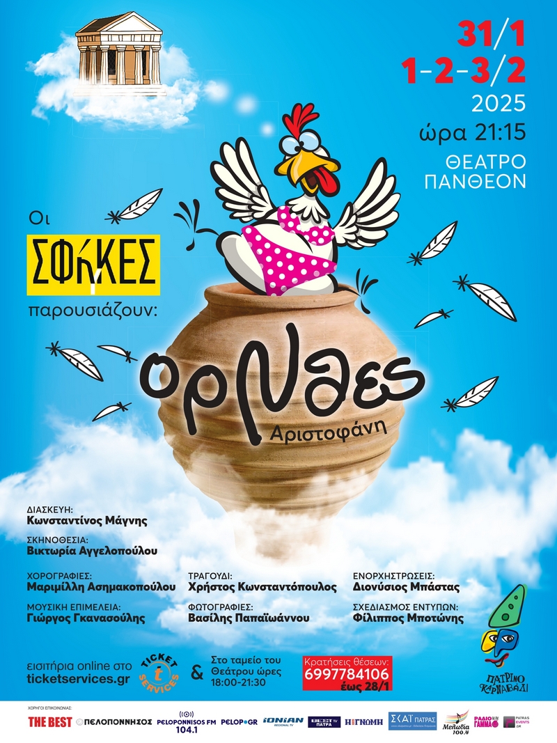 Οι ΣΦήγΚΕΣ φέτος βάζουν φτερά και πραγματεύονται το έργο του Αριστοφάνη «ΟρΝθες» μια παραγωγή που κλείνει το μάτι στα ευτράπελα του σήμερα, της πολιτικής, της αναξιοκρατίας και της φαυλότητας που ταλανίζει την κοινωνία μας.