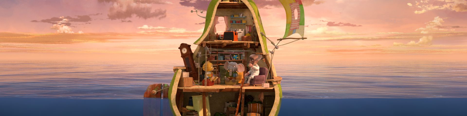 It is a lovely life for Sebastian the elephant and his best cat friend Mitcho, until the Mayor of their sunny town mysteriously disappears. Just before his disappearance, the Mayor sends a message in a bottle, claiming that he was shipwrecked on Mysterious Island, and made a great discovery. Within the bottle is a seed that the two friends plant in the soil, only to discover that the next day a giant pear has grown in its place. Using the giant fruit, which initially turns into a house, the ingenious Professor Glucose builds a ship on which our heroes sail for the island, on a quest to find their mayor... The film won the Audience Prize at the 1st International Children's Film Festival of Athens.