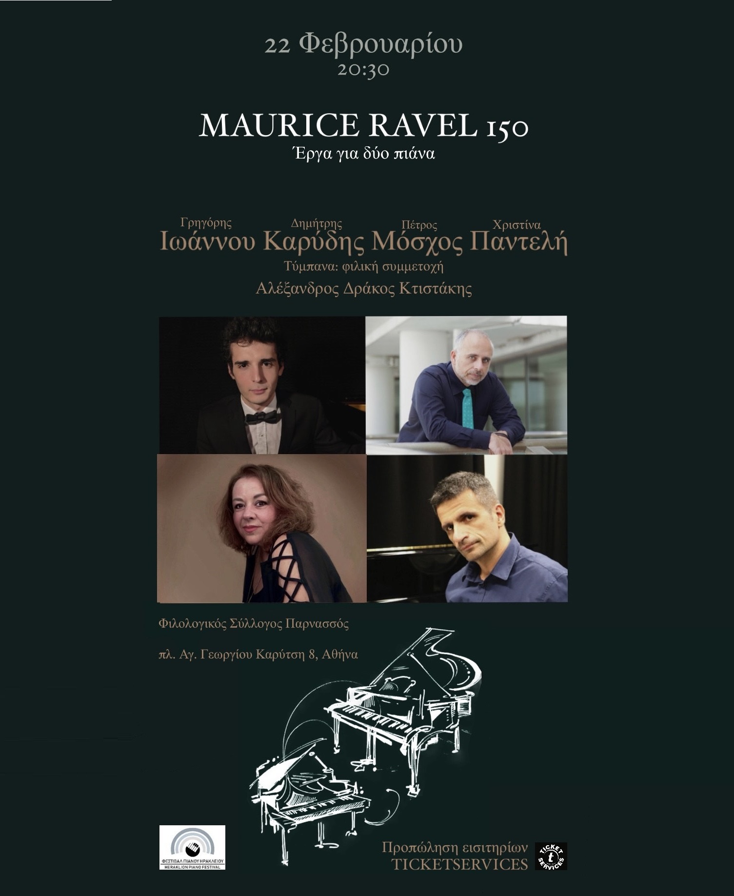 παρουσιάζουν τα άπαντα έργα του για 2 πιάνα και 4 χέρια στις 22 Φεβρουαρίου, 8.30μμ στον Φιλολογικό Σύλλογο Παρνασσός, σε συνεργασία με το Φεστιβάλ Πιάνου Ηρακλείου.