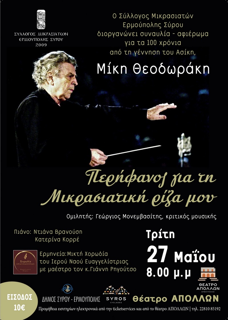 Ο Σύλλογος Μικρασιατών Ερμούπολης Σύρου διοργανώνει μουσικό αφιέρωμα