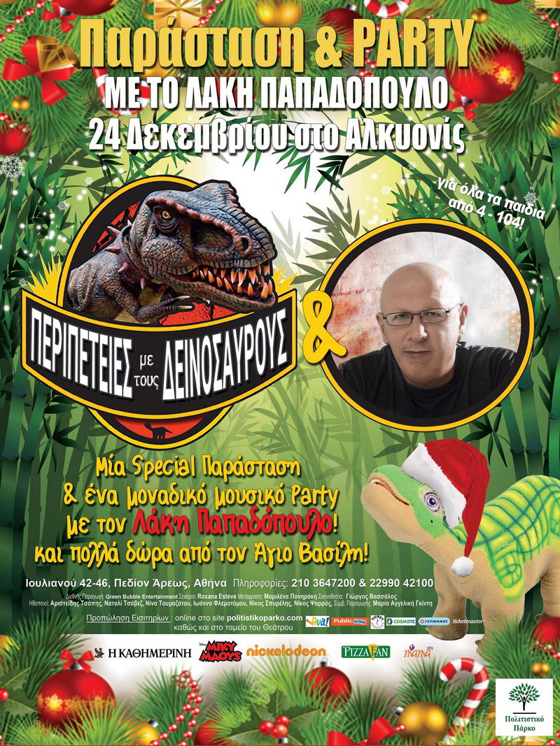 Η παράσταση «ΠΕΡΙΠΕΤΕΙΕΣ ΜΕ ΤΟΥΣ ΔΕΙΝΟΣΑΥΡΟΥΣ» & Χριστουγεννιάτικο Party με τον Λάκη Παπαδόπουλο
