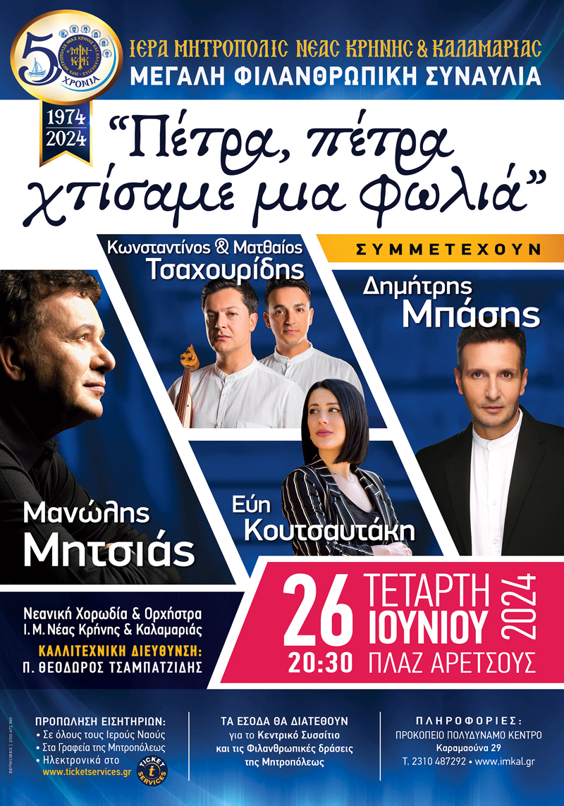 Προπώληση εισιτηρίων στους Ιερούς Ναους και στα γραφεία της Μητροπόλεως και στο ticketservices.gr
