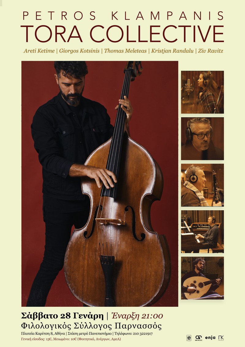 Μετά τις δύο επιτυχημένες συναυλίες στο Μικρό Θέατρο της Αρχαίας Επιδαύρου το 2021, το Σάββατο 28 Ιανουαρίου 2023, στις 21.00, ο Πέτρος Κλαμπάνης, μαζί με ένα διεθνές σχήμα σπουδαίων μουσικών, θα παρουσιάσει για πρώτη φορά στην Αθήνα τον έκτο προσωπικό δίσκο του “Tora Collective” στην ιστορική αίθουσα συναυλιών του Φιλολογικού Συλλόγου «Παρνασσός».