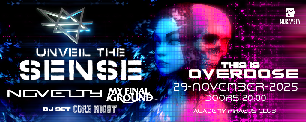 Οι Unveil the Sense επιστρέφουν με εκρηκτική ενέργεια και παρουσιάζουν το νέο τους άλμπουμ Overdose σε μια βραδιά που θα μείνει χαραγμένη στη μνήμη. Το This is Overdose, στις 29 Νοεμβρίου στο Piraeus Academy, έρχεται να ταρακουνήσει τη σκηνή με συντριπτικά riffs, φωνητικά που ακροβατούν ανάμεσα σε οργή και μελωδία και ρυθμούς που σε παρασύρουν χωρίς έλεος. Μαζί τους οι Novelty και οι My Final Ground, δύο μπάντες που φέρνουν την απόλυτη core δύναμη και ολοκληρώνουν ένα line-up έτοιμο να ανατινάξει το κοινό.