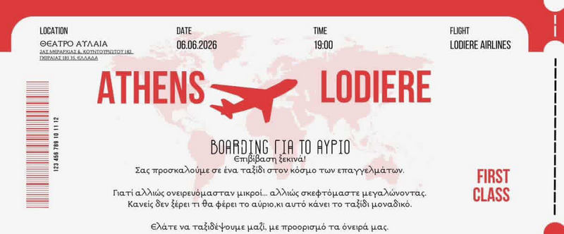 • Σάββατο 06 Ιουνίου 2026, 19:00 Παράσταση χορού Lodiere ΘΕΑΤΡΟ ΑΥΛΑΙΑ - ΠΟΛΥΧΩΡΟΣ ΤΕΧΝΩΝ