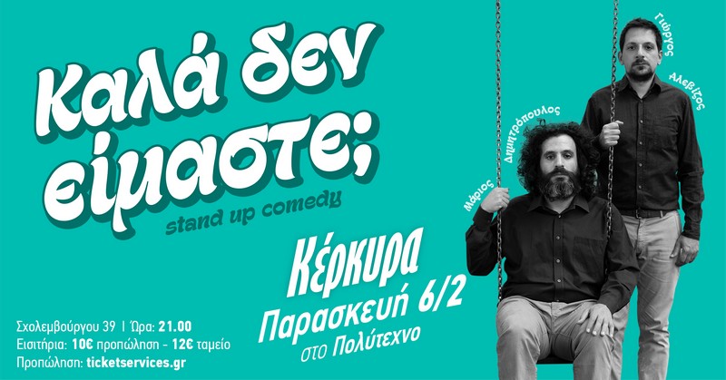 Η δεύτερη stand up comedy παράσταση του Μάριου Δημητρόπουλου και του Γιώργου Αλεβίζου έρχεται στην Κέρκυρα, στο Πολύτεχνο, την Παρασκευή 6 Φεβρουαρίου!