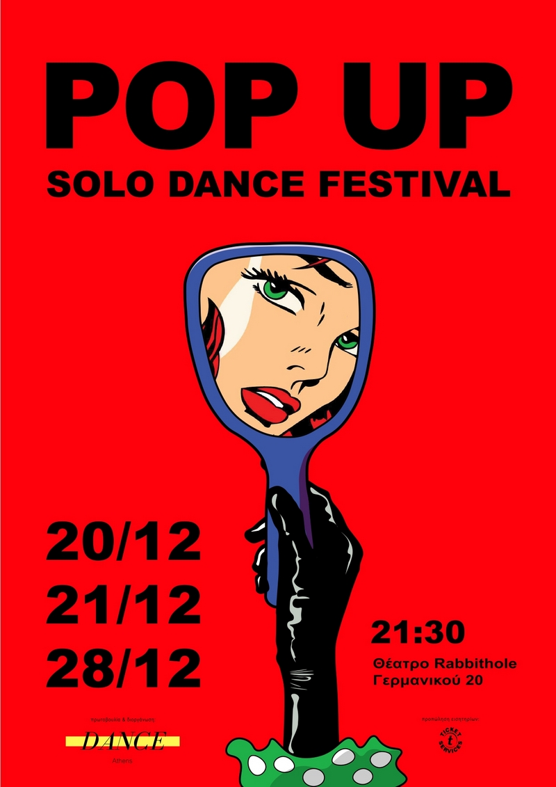Το POP UP Solo Dance Festival στην Αθήνα είναι ένα καινοτόμο φεστιβάλ χορού που δίνει βήμα στη μοναδικότητα των δημιουργών/performer και της προσωπικής τους έκφρασης. Στο φεστιβάλ θα παρουσιαστούν solo performances.