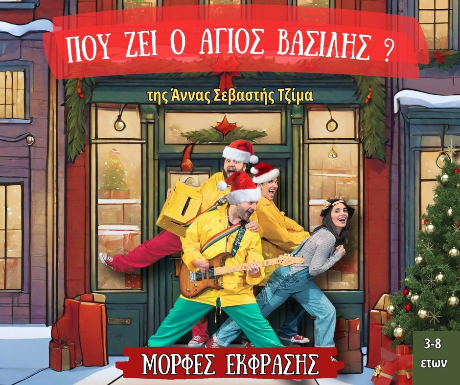 Για τέταρτη συνεχόμενη χρονιά η αγαπημένη Χριστουγεννιάτικη παράσταση των παιδιών «Πού ζει ο Άγιος Βασίλης» επιστρέφει στο θέατρο Μορφές Έκφρασης!