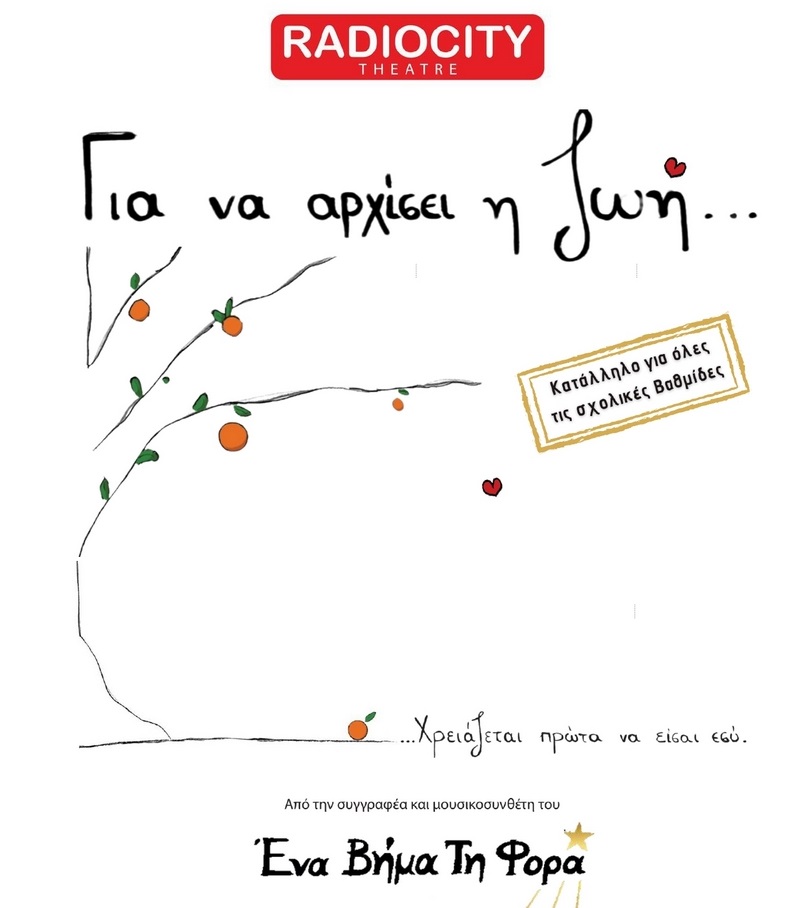 Το πολυαναμενόμενο και ολοκαίνουργιο μουσικοθεατρικό έργο αυτογνωσίας και επίγνωσης, της δημιουργού του πολυαγαπημένου "Ένα Βήμα Τη Φορά The Musical", Μαρίας Στεφάνου, "Για Να Αρχίσει Η Ζωή’’ έρχεται στο πλήρως ανακαινισμένο Ράδιο Σίτυ για τη θεατρική σεζόν 2024-2025 και συγκεκριμένα από 1 Δεκεμβρίου για παραστάσεις κοινού και σχολείων.