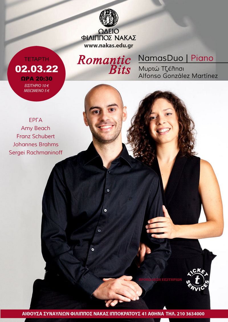 Οι ΝamasDuo Piano έρχονται απευθείας από την Ολλανδία για να σας παρουσιάσουν έργα συνθετών της Ρομαντικής περιόδου για πιάνο 4 χέρια αλλά και σόλο πιάνο.